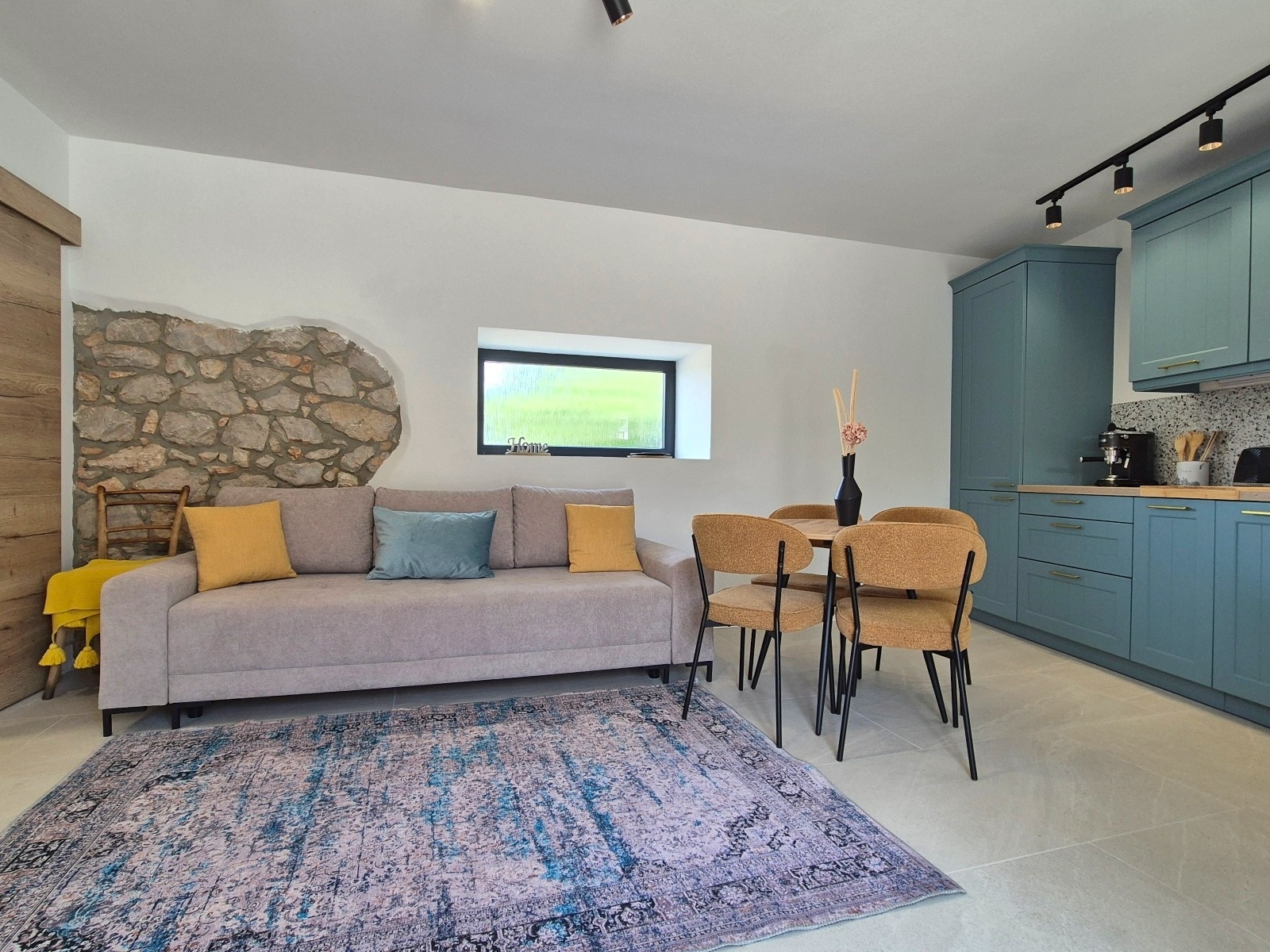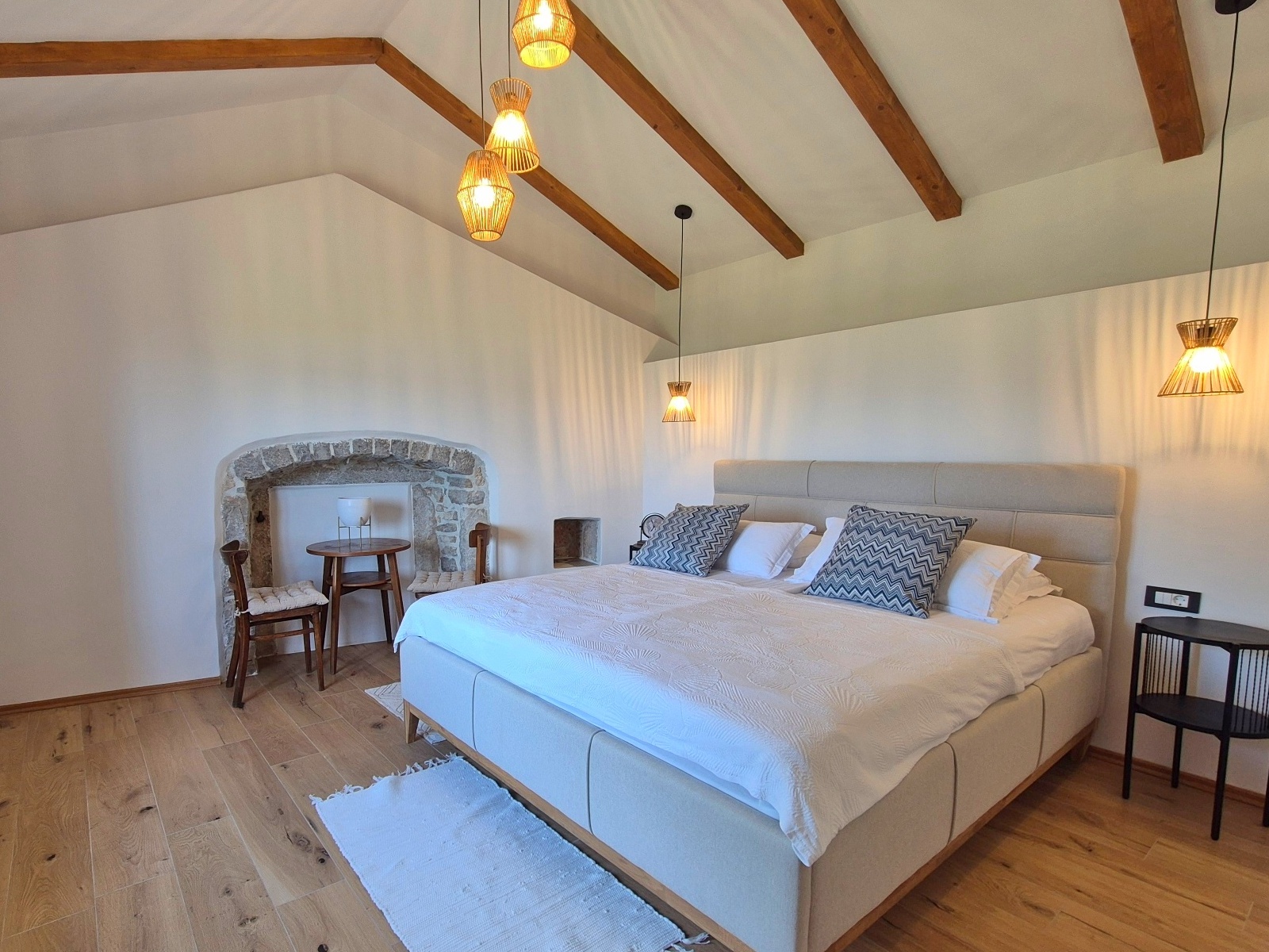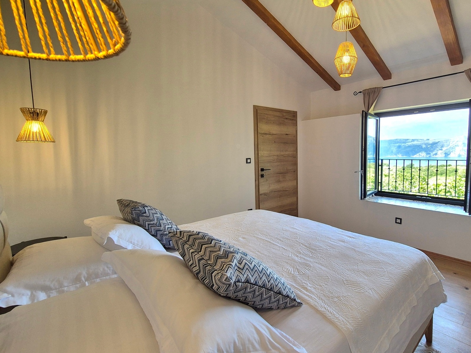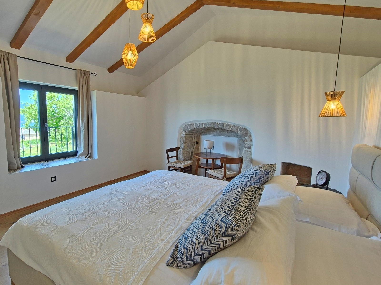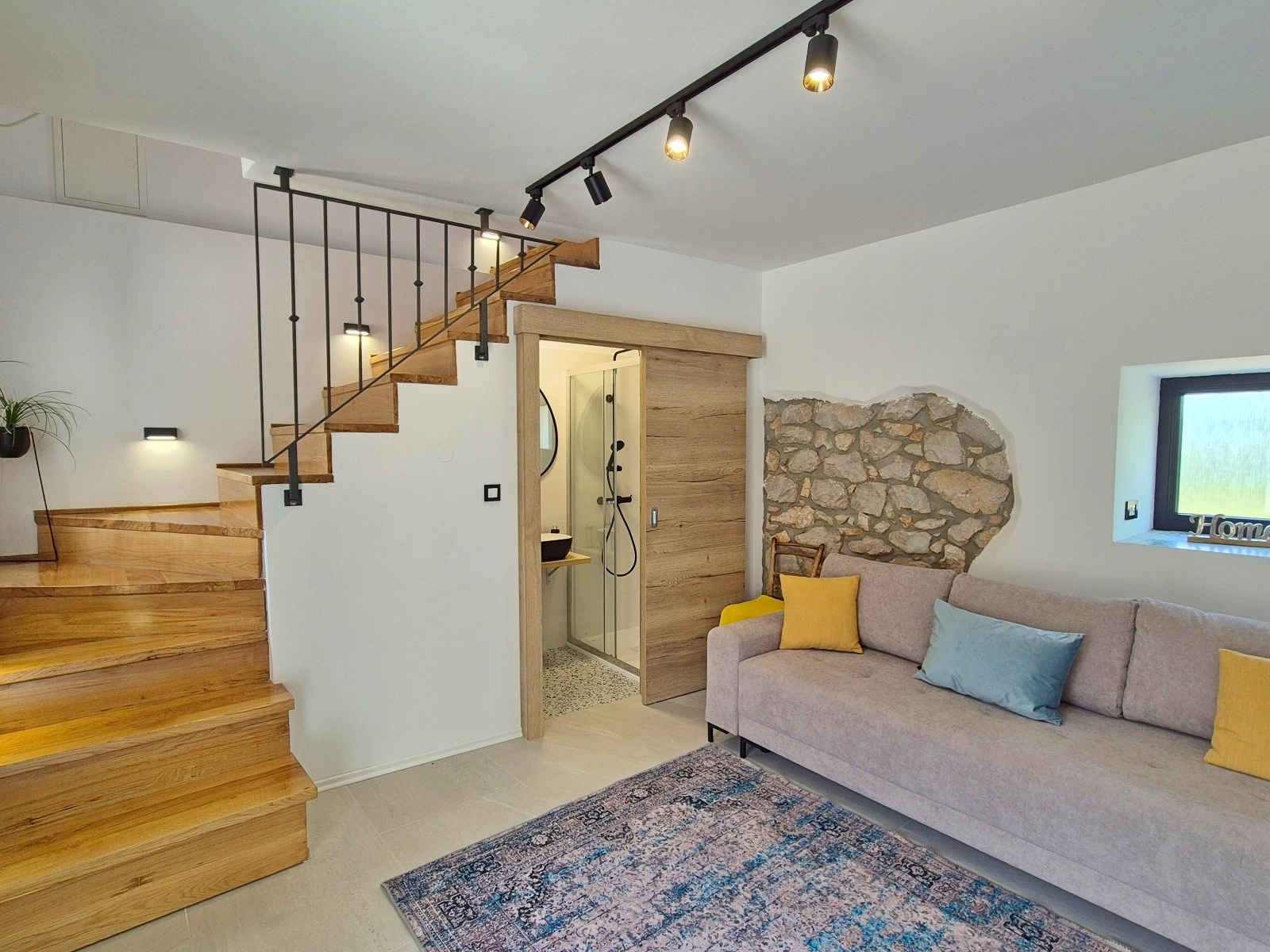 Otok Krk, naselje Brzac, manja kamena kuća za najam. Sastoji se od kuhinje, blagovaone i dnevnog dijela te kupaone na prizemlju i jedne spavaće sobe i kupaone na katu. Sa kata se pruža predivan pogled na more i otok Cres. Kući pripada manja terasa i jedno parkirno mjesto. Izrazito mirna lokacija, idealna za odmor i opuštanje i vrlo atraktivna polazna točka za otkrivanje ostalih dijelova otoka Krka.